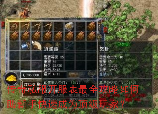 传奇私服开服表最全攻略如何助新手快速成为顶级玩家?